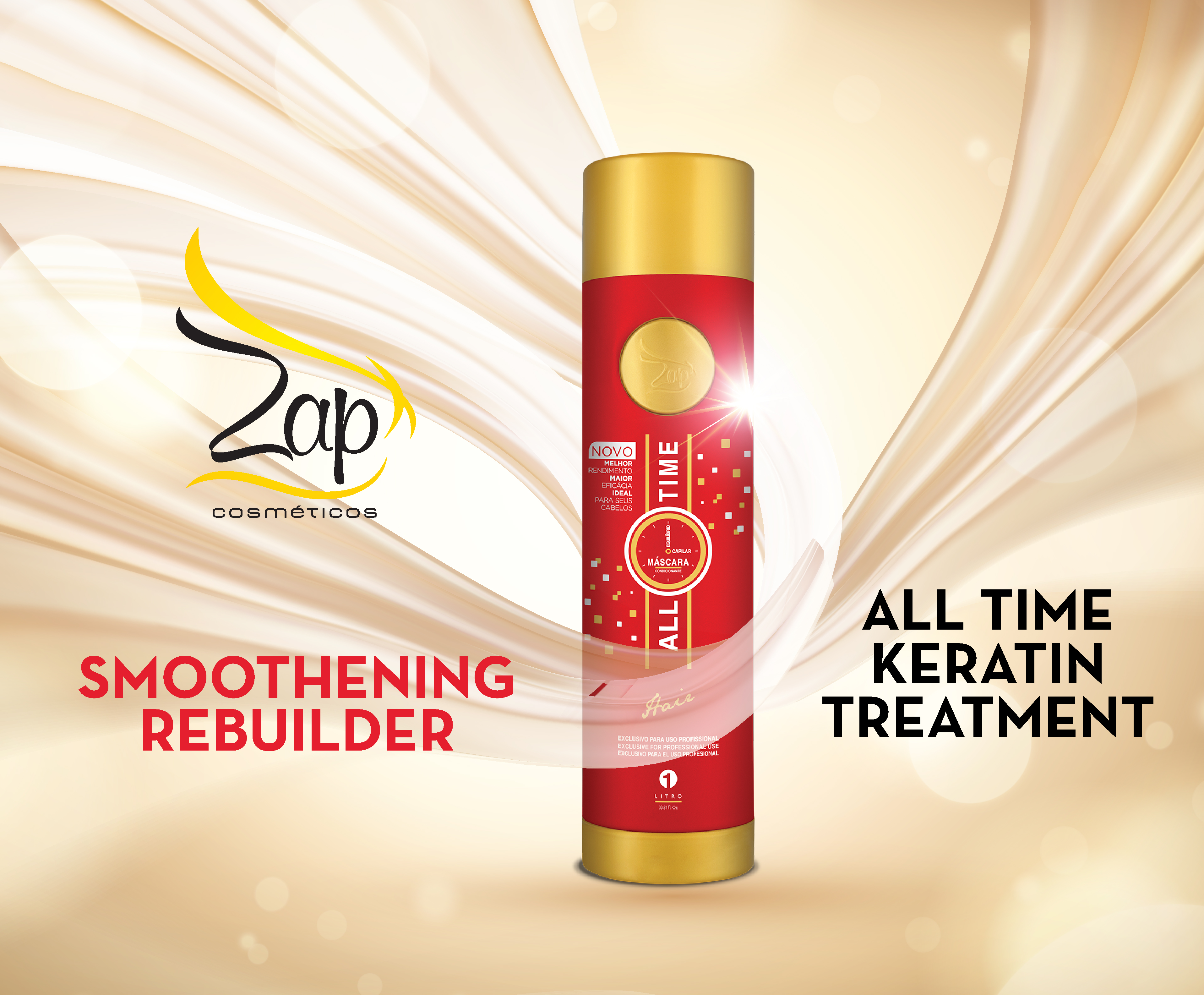 Zap - All Time Keratin Treatment is a Brazilian smoothing rebuilder which is suitable for chemically treated or damaged hair to give unmatched results in the Brazilian smoothing market! It is a Brazilian smoothing system based on silk protein, shea butter and coconut oil.